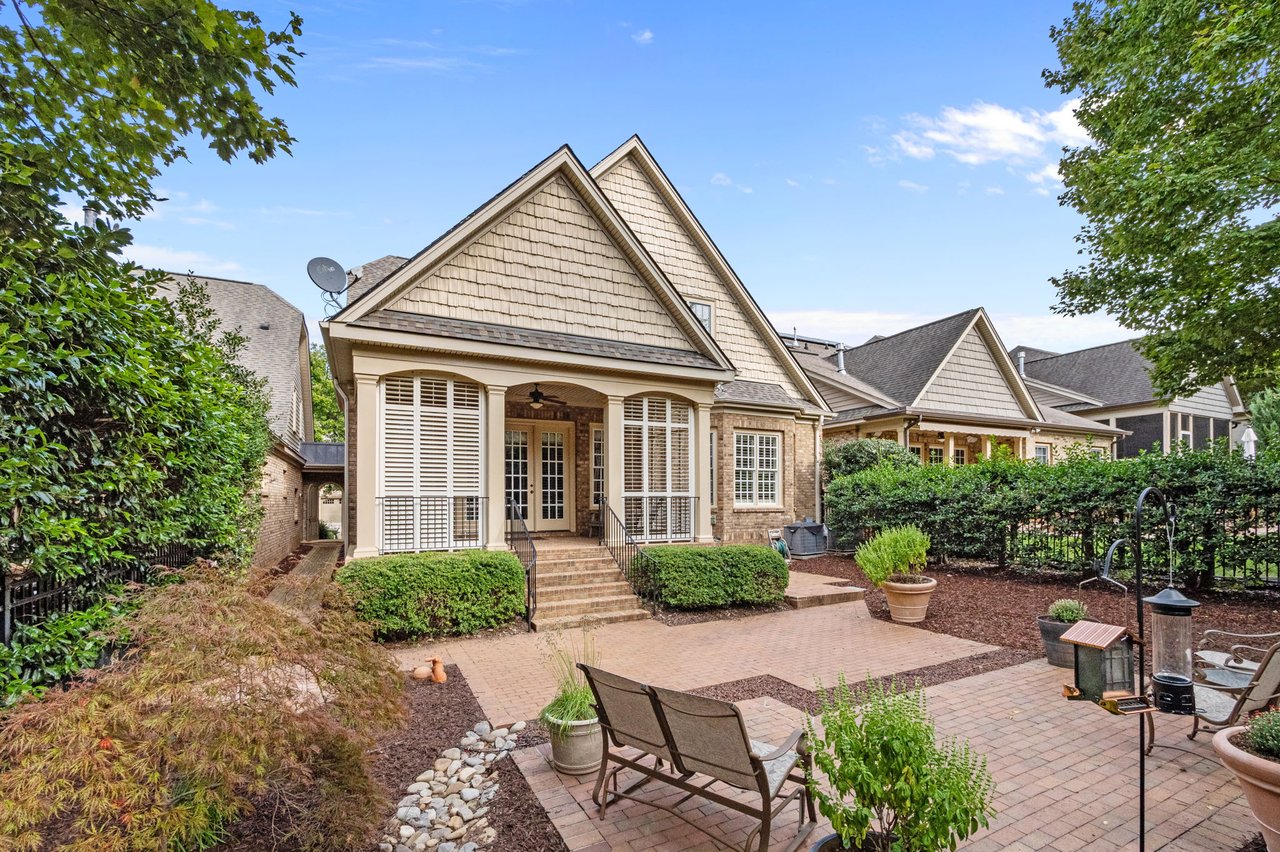 Step outside to a private outdoor retreat where lush, mature landscaping provides year-round privacy without sacrificing natural light. The covered brick porch with plantation shutters offers a charming spot for morning coffee or evening wine, while two additional brick patios are ideal for outdoor dining or container gardening. With an irrigation system to keep everything thriving and the HOA maintaining the front lawn, shrubs, and much of the exterior of the home, this low-maintenance property allows you to spend more time enjoying the things you love.
